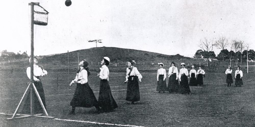 The first photographic evidence we have of an early netball game being played in Aotearoa New Zealand, is of a game between two teams from the St Luke’s Presbyterian church bible class group, which was held on a lumpy Remuera farm paddock in 1906. It was by no means the first time this ‘new game for girls’ was played in the country, but it is the earliest image we have on record which gives us a glimpse of our game and its enterprising pioneers at the turn of the 20th Century.